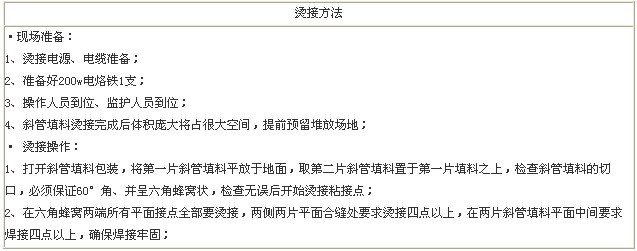 ·根据斜管沉淀池填料支架安装施工图,先将填料支架安装到位,检查所有焊接结点牢靠、支架强度足以承受填料重量,并在支架表面完成防腐处理;